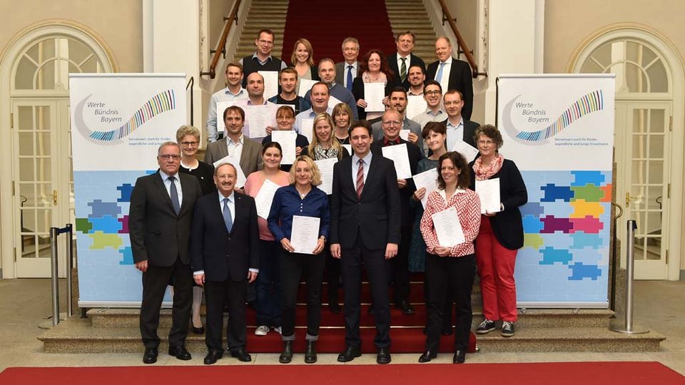 Auf der Basis der Ziele und Inhalte von „mehrWERT Demokratie“ wurden unter der Schirmherrschaft von Landtagspräsidentin Barbara Stamm, Staatsministerin Emilia Müller sowie Staatsminister Dr. Ludwig Spaenle 28 Lehrkräfte verschiedener Schularten als Beraterin/Berater für schulische Demokratieerziehung qualifiziert.