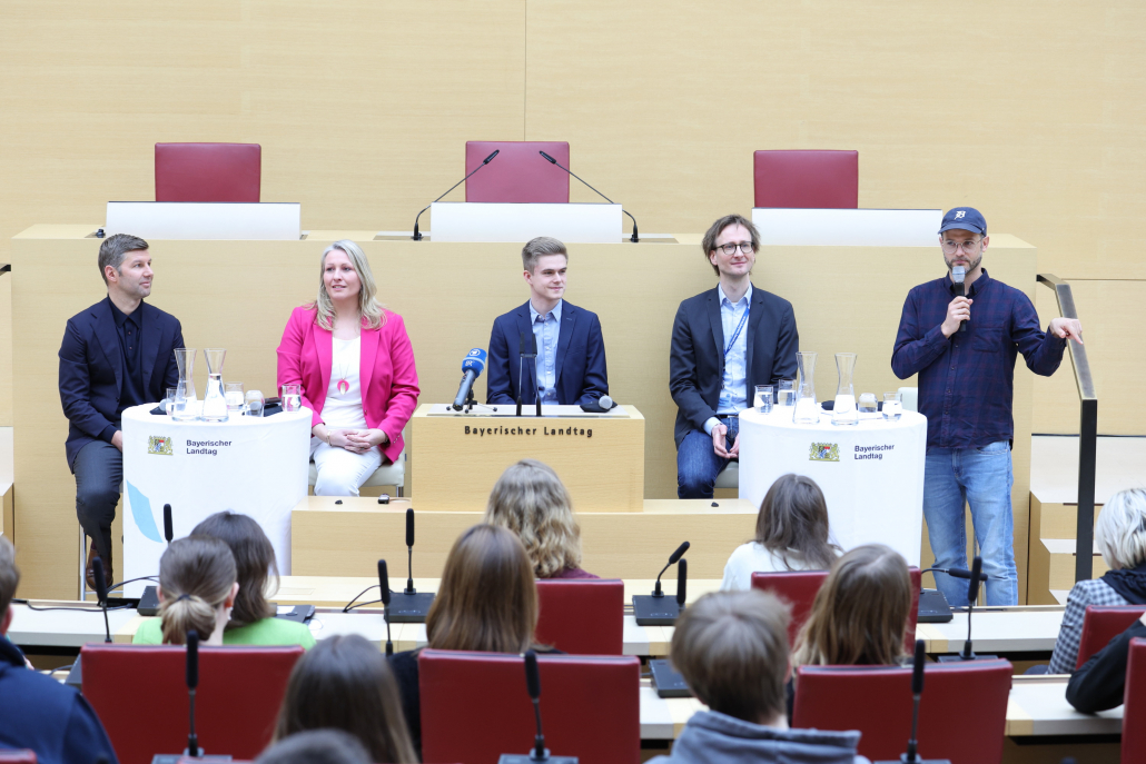 Am 13. Februar 2023 diskutierten rund 120 bayerische Schülerinnen und Schüler mit Abgeordneten des Bayerischen Landtags, Ex-Fußballnationalspieler Thomas Hitzlsperger und weiteren Referentinnen und Referenten aus Bildung und Wissenschaft zum Thema „Mein Land – meine Aufgabe? Junge Menschen und das Engagement für unsere Demokratie“.